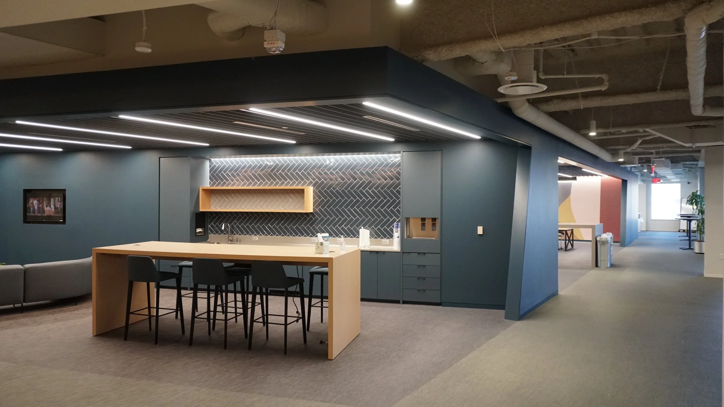 PROJECT SUMMARY: This fast-track office interior project succeeded in meeting the client’s budget, schedule, and design aspirations reflecting the company’s re-branding in the refreshed 20,000 SF space. The construction drawings received zero permit comments from the AHJ, a small but important accomplishment which aided in completing the project on time.